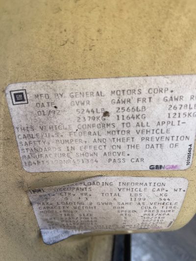 1992 Buick Roadmaster Location - GM - Row 30 - Stock # H51130